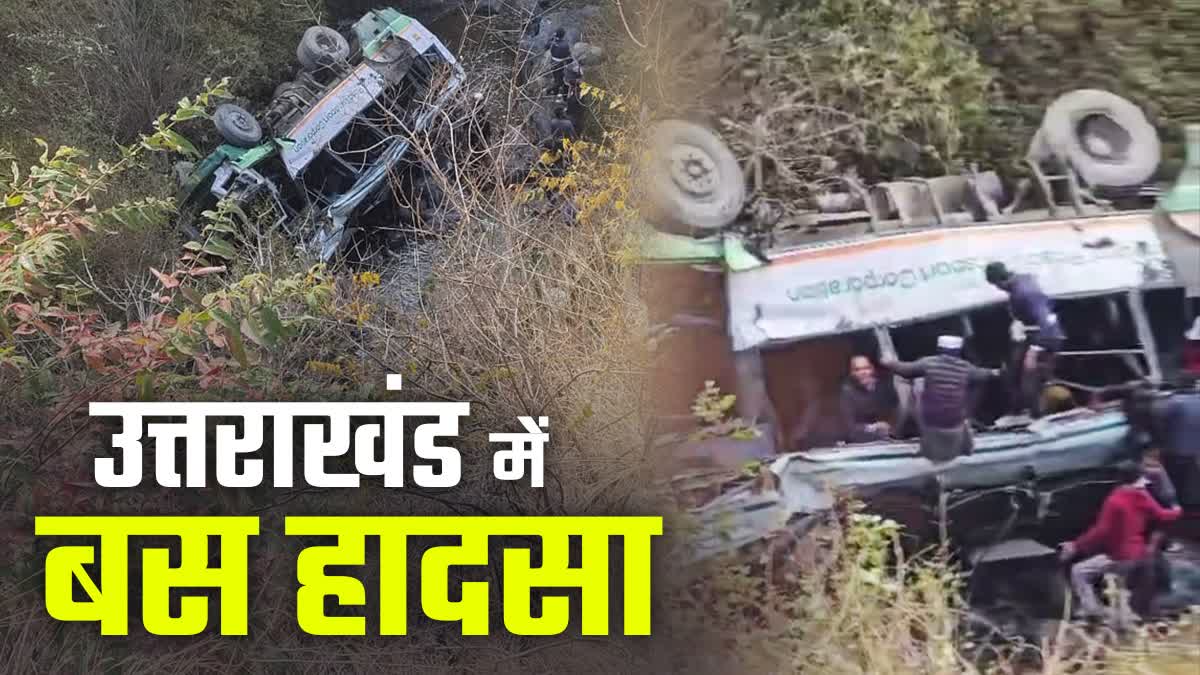 हिमाचल पथ परिवहन निगम की बस उत्तराखंड में खाई में गिरी
